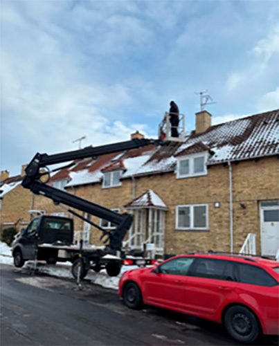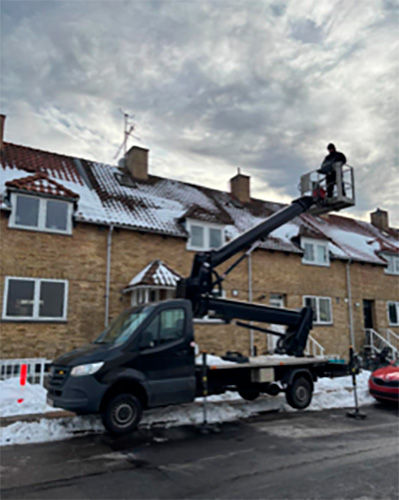 Når Antennemesteren udfører liftopgaver deler vi normalt liften imellem 2 eller 3 opgaver så udgiften til leje af liften bliver mere fornuftig.